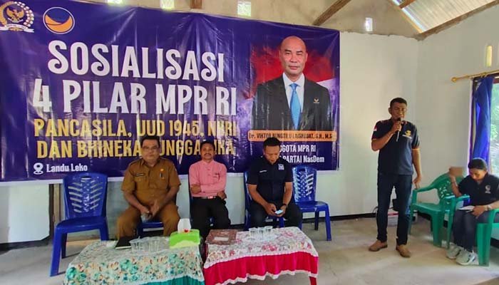 Deny Zacharias, Tenaga Ahli Viktor Bungtilu Laiskodat sekaligus Sekretaris DPD NasDem Rote Ndao, menyampaikan bahwa sosialisasi kali ini menjadi agenda terakhir yang diselenggarakan atas nama Viktor Laiskodat di Kabupaten Rote Ndao pada tahun 2025. Ia menekankan pentingnya pemahaman mendalam tentang nilai-nilai Empat Pilar Kebangsaan untuk menjaga keutuhan NKRI di tengah keragaman masyarakat.