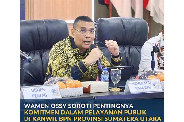 “Awal dari pelayanan yang baik harus dimulai dari komitmen bersama. Kita tidak bisa lagi menganggap rakyat itu sebagai sesuatu yang tidak penting. Artinya, sifat melayani kita harus lebih besar kepada masyarakat karena mereka berhak mendapatkan pelayanan terbaik,” ucap Wamen Ossy saat memberikan pengarahan kepada seluruh jajaran di Aula Adhiguna Kanwil BPN Provinsi Sumatera Utara.